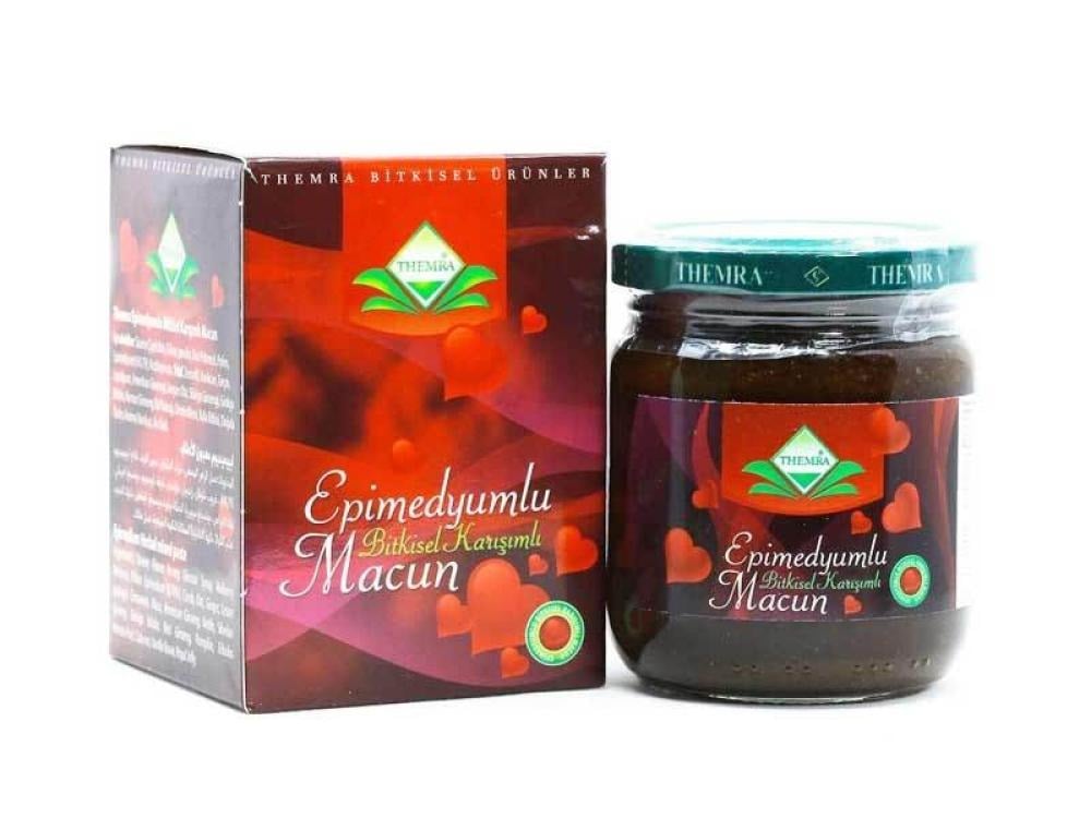 معجون Epimedyumlu Macun من “Themra” معمول بعناية من أعشاب طبيعية مثل عشبة الإبيميديوم (عشبة العنزة) ، جينسنغ ، زنجبيل ، وقرفة وغيرها — عشان يعطيك طاقة ، أداء طبيعي ، وحيوية يوم بعد يوم.